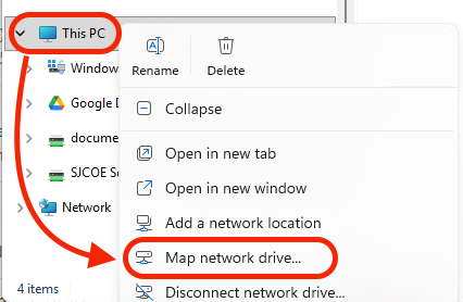 In order to access the SJCOE Server on a Windows 11 computer, you'll need to map the drive using your File Explorer.