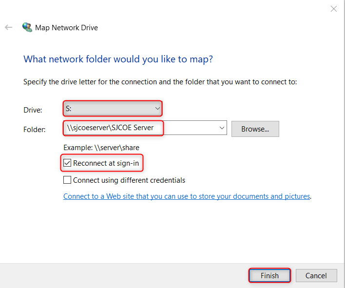 - Folder: type the following: \\sjcoeserver\SJCOE Server